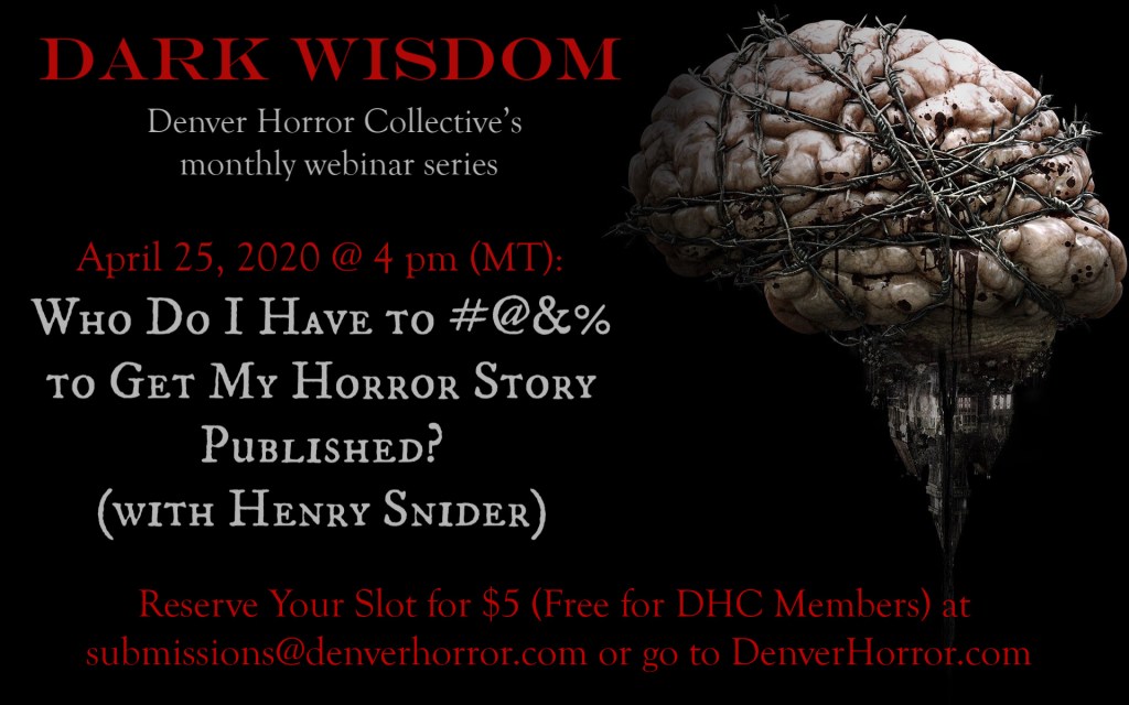 April 25, 2020 @ 4pm (MT): Who Do I Have to #@&% to Get My Horror Story Published? (with Henry Snider)