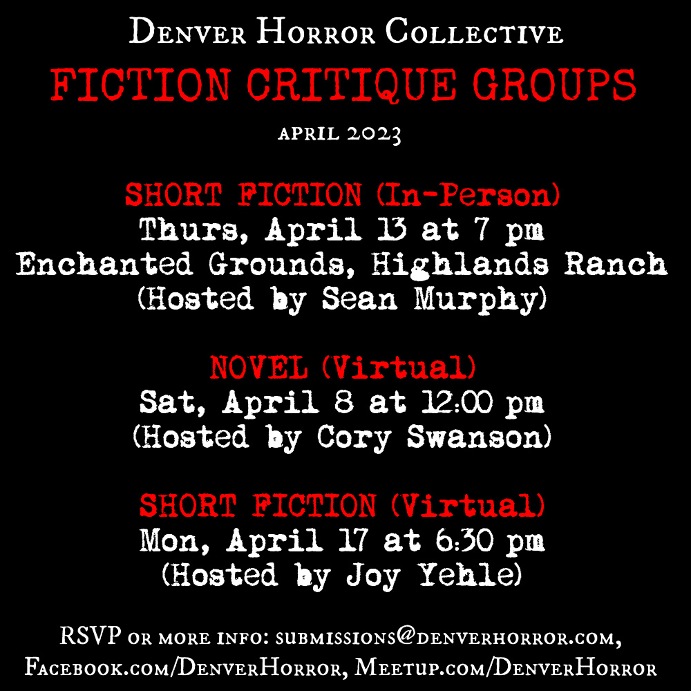April Fiction Critiques Image Posted on April 3, 2023 by joshsworstnightmare Share this: Click to share on X (Opens in new window) X Click to share on Facebook (Opens in new window) Facebook Like Loading... Related