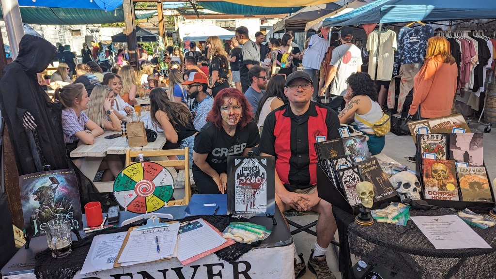 On September 15-17, DHC had a table at Colorado Festival of Horror, where we sold our anthologies and member publications, tricked people into spinning the Disc of Dread for prizes (and punishments), and recruited new folks to the cult!