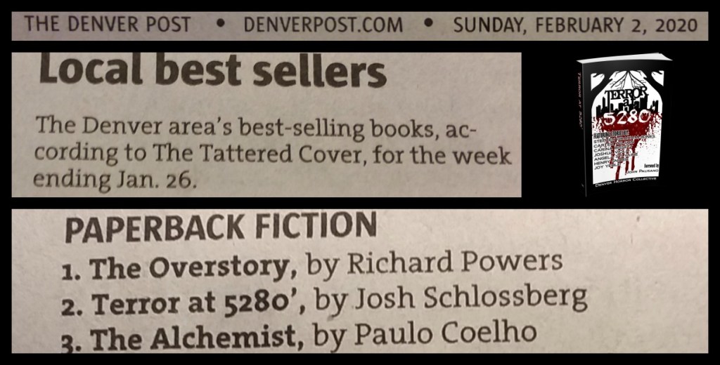 Terror at 5280’, Denver Horror Collective’s horror fiction anthology published in November, earned the #2 slot on Denver Post’s local bestseller list for paperback fiction for the week ending January 26, 2020.